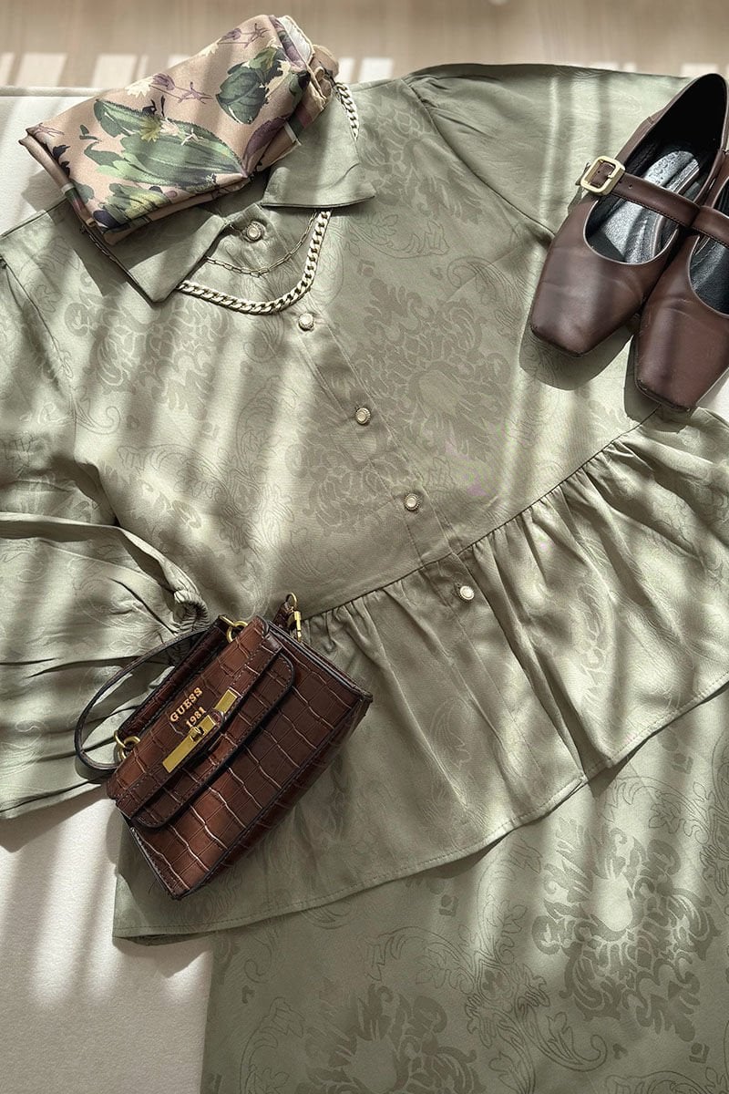 Fiyonklu Pamuk Etek - Yağ Yeşili