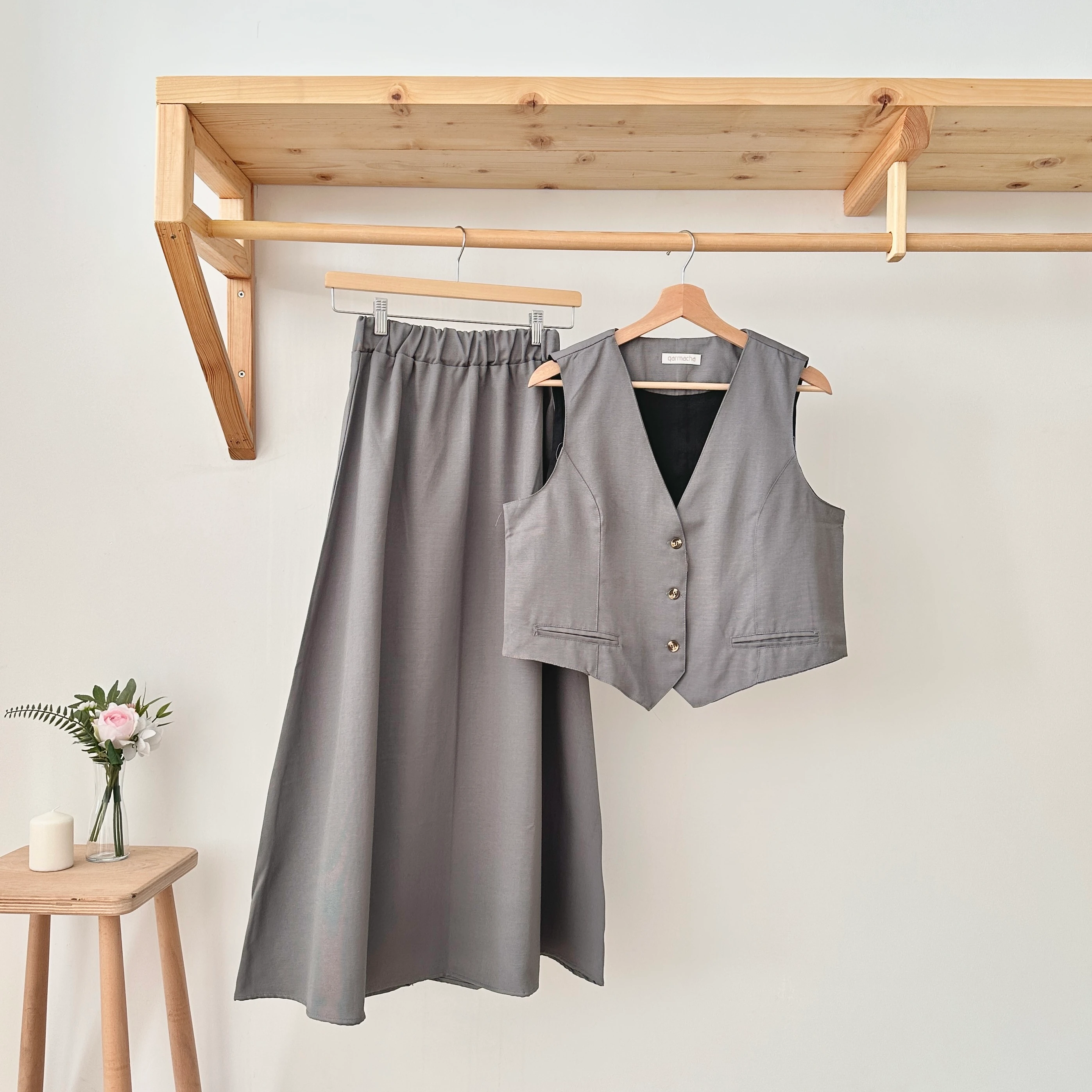 Fiyonklu Yelek & Etek Takım - Taba